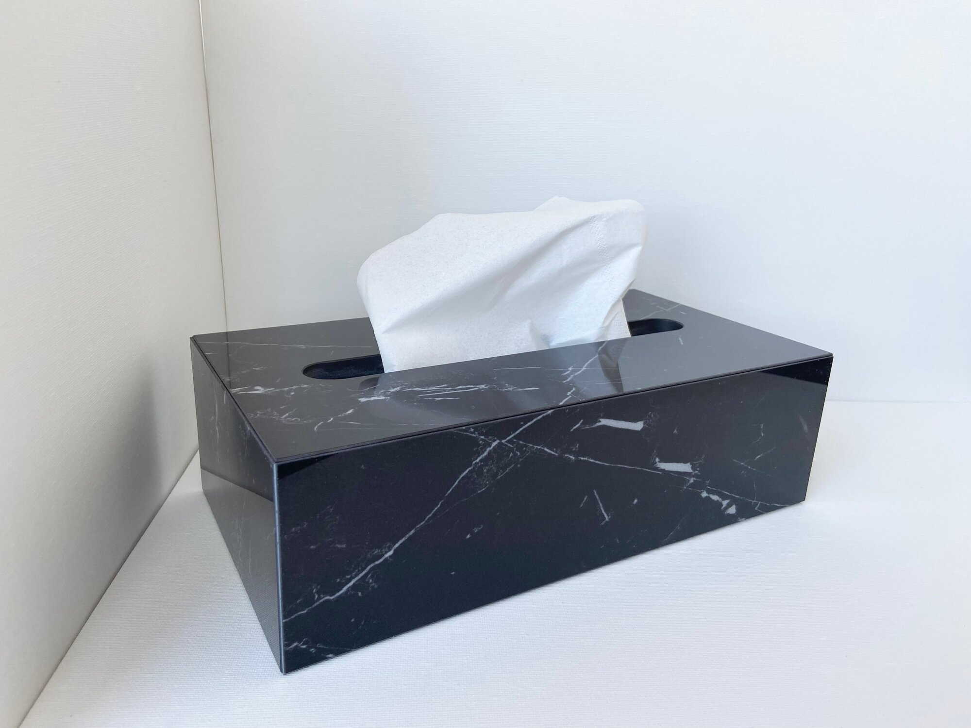 Купить Салфетница для кухни и ванной комнаты (бокс для бумажных полотенец) «Керамогранит Черный мрамор» от бренда Интерьерные детали с доставкой по всей России.