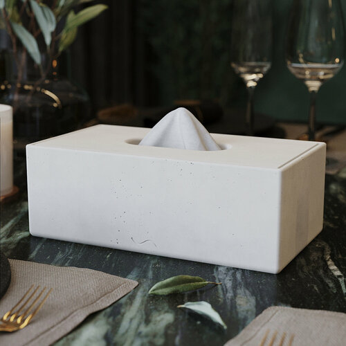 Helen - это стильная и практичная интерьерная салфетница из бетона, изготовленная вручную. Салфетница на стол (настольный держатель) будет великолепно смотреться как в интерьере кухни или гостиной, так и на столике ресторана или бара. Подставка для салфеток – это еще и прекрасный органайзер для кухни. Салфетница настольная необходима для сервировки праздничного стола и станет прекрасным декором для дома.