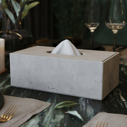 Для удобства и безопасности к боксу для салфеток в комплекте прилагаются фетровые и силиконовые накладки. Органайзер и другие наши изделия из бетона обладают лаконичным дизайном и прекрасно впишутся в любой интерьер. Особенно органично наши изделия будут смотреться в интерьерах современных минималистичных и экологичных стилей, например, сканди, джапанди или лофт.