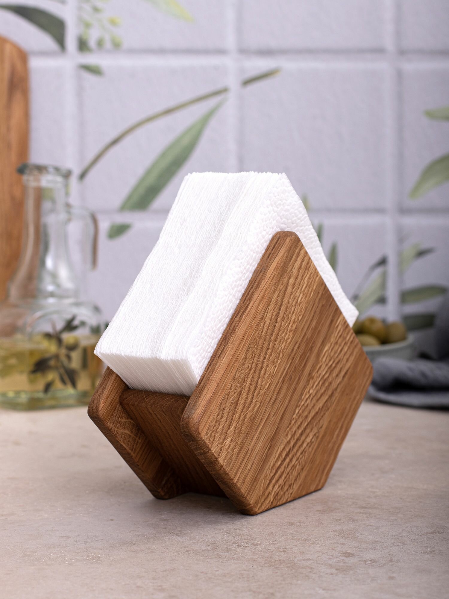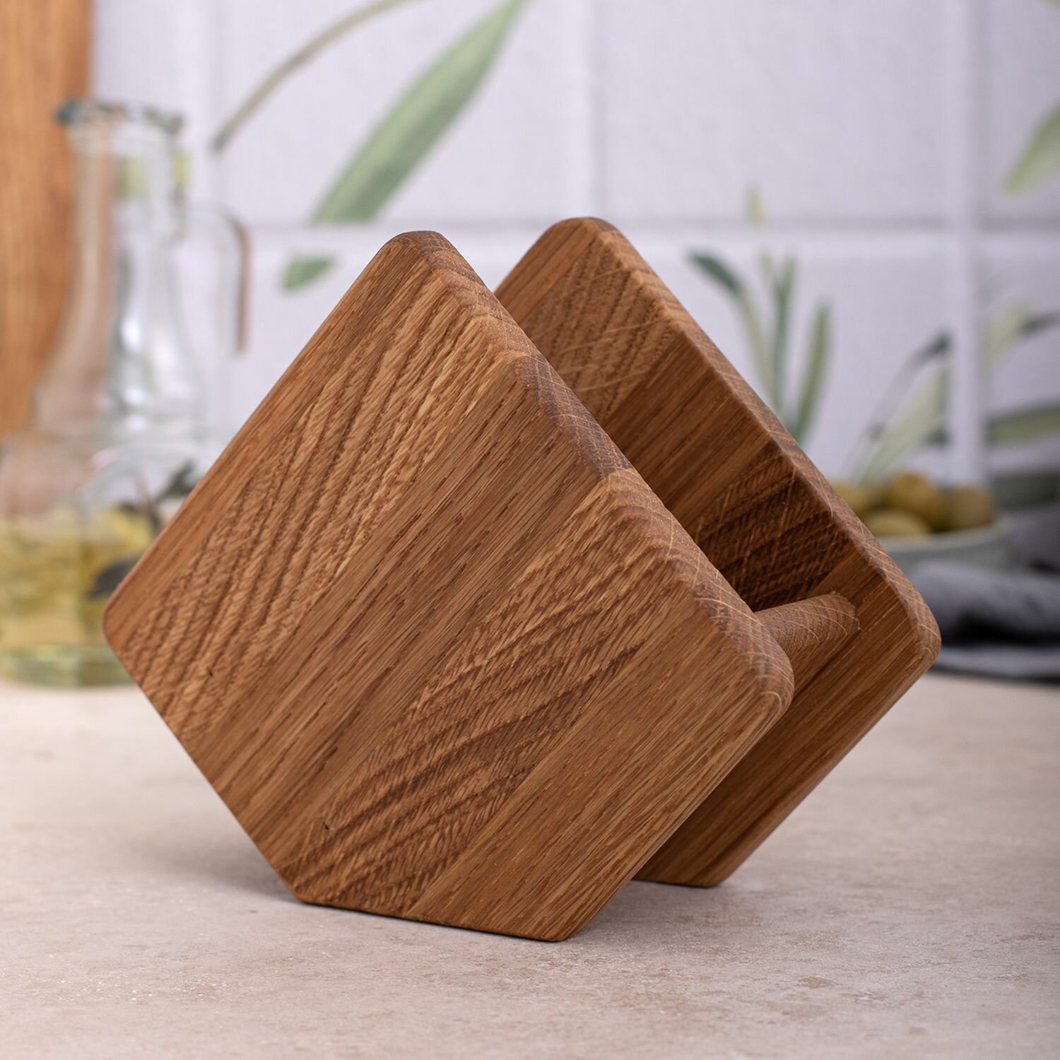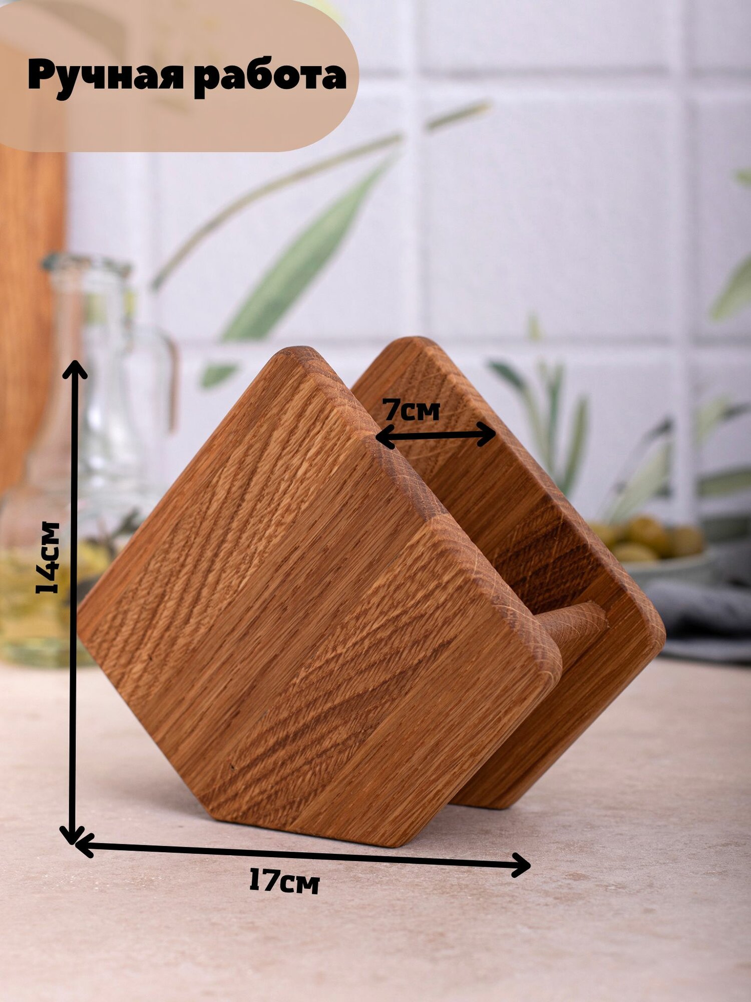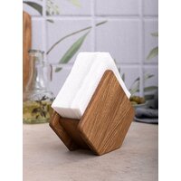Салфетница деревянная, натуральная, универсальная салфетница ромбик горизонтальная вертикальная из массива дерева дуба оригинальная. Вмещает стандартный размер салфеток. Деревянное изделие подходит для салфеток на кухню, покрывается экологически чистым маслом. Подставка под салфетки впишется в любой интерьер кухни, хоть в стиле лофт хоть классика, очень стильная и красивая подставка. Отдел для салфеток позволяет их удобно брать не боясь рассыпать салфетки по столу. Отличный подарок близким, коллеге, на день рождение. Цвет слегка может отличаться. Современный и стильный дизайн, удобное использование, приятный цвет. Беречь от воды и горячих поверхностей. В случае загрязнения протереть влажной тканью и вытереть насухо. Нейтральный дизайн и натуральные материалы. С нашей деревянной салфетницей можно красиво сделать сервировку салфеток. Данный товар можно найти по запросу: салфетница или салфетница купить оптом и кухонные принадлежности или кухонная посуда. салфетка на стол кухонный. бамбуковая посуда или сервировка стола и посуда для кухни. салфетницы. для салфеток подставка