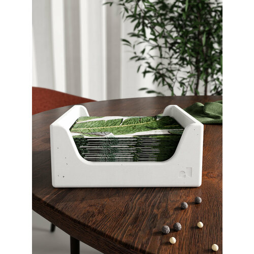 Салфетница на стол интерьерная прекрасно подойдет для организации пространства.[BR][BR]Все мы возвращаемся после работы или после длительного путешествия домой, судорожно выдыхаем, отбрасывая усталость, проходим на кухню, разогреваем ужин и садимся за стол. Вокруг привычная атмосфера, приятные мелочи интерьера, которые создают тот самый уют, который делает дом домом.[BR][BR]Бренд de сoore представил диспенсер для бумажных салфеток который отлично подойдет для сервировки стола дома, дачи, ресторана или кафе (Horeca)[BR][BR]Размеры внешние:[BR]14*14*6см[BR][BR]Размеры внутренние для салфеток 24*24см:[BR]12*12*5см[BR][BR]Изготовленная вручную из архитектурного бетона, с особым трепетом, салфетница интерьерная идеально подходит под любой интерьер: будь это набирающий популярность стиль лофт или привычная с частичкой роскоши атмосфера неоклассики.[BR][BR]Для комфортного использования бетонного органайзера под салфетки в комплекте силиконовые накладки, чтобы изделие не скользило и не царапало вашу мебель.[BR][BR]Только представьте шумное застолье с оглушительным смехом или романтическое свидание с вином и пастой, маленьким букетом сухоцветов на столе и небольшой квадратной салфетницей, к которой изящно тянется рука.[BR][BR]Данная горизонтальная салфетница для бумажных салфеток в нашем магазине присутствует в нескольких покрытиях: матовом и глянцевом и расцветками: белая, серая, темно серая и черная. Идеальная замена привычным керамическим, деревянным и металлическим салфетницам из дешевых материалов.[BR][BR]Компания de coore продумала все необходимые мелочи для ваших красивых моментов в жизни.