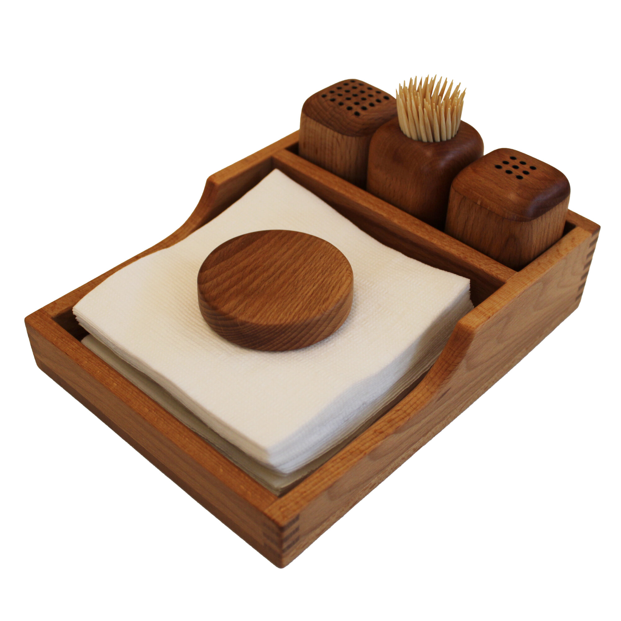 Салфетница + солонка и перечница + подставка под зубочистки (стилизованный набор)
