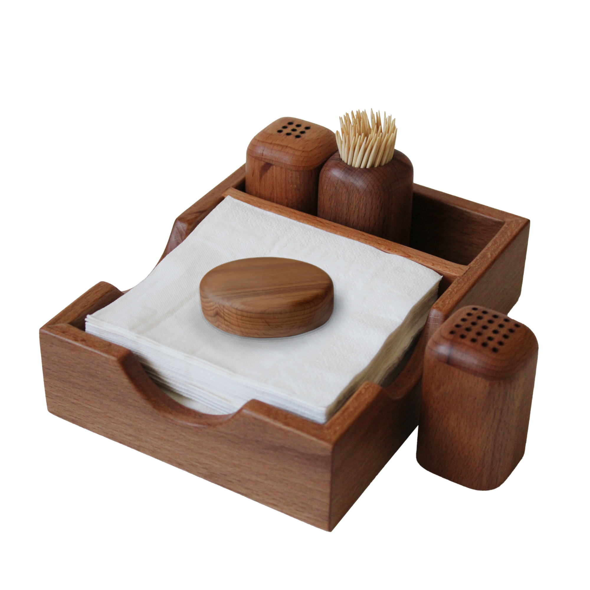 Салфетница + солонка и перечница + подставка под зубочистки (стилизованный набор)