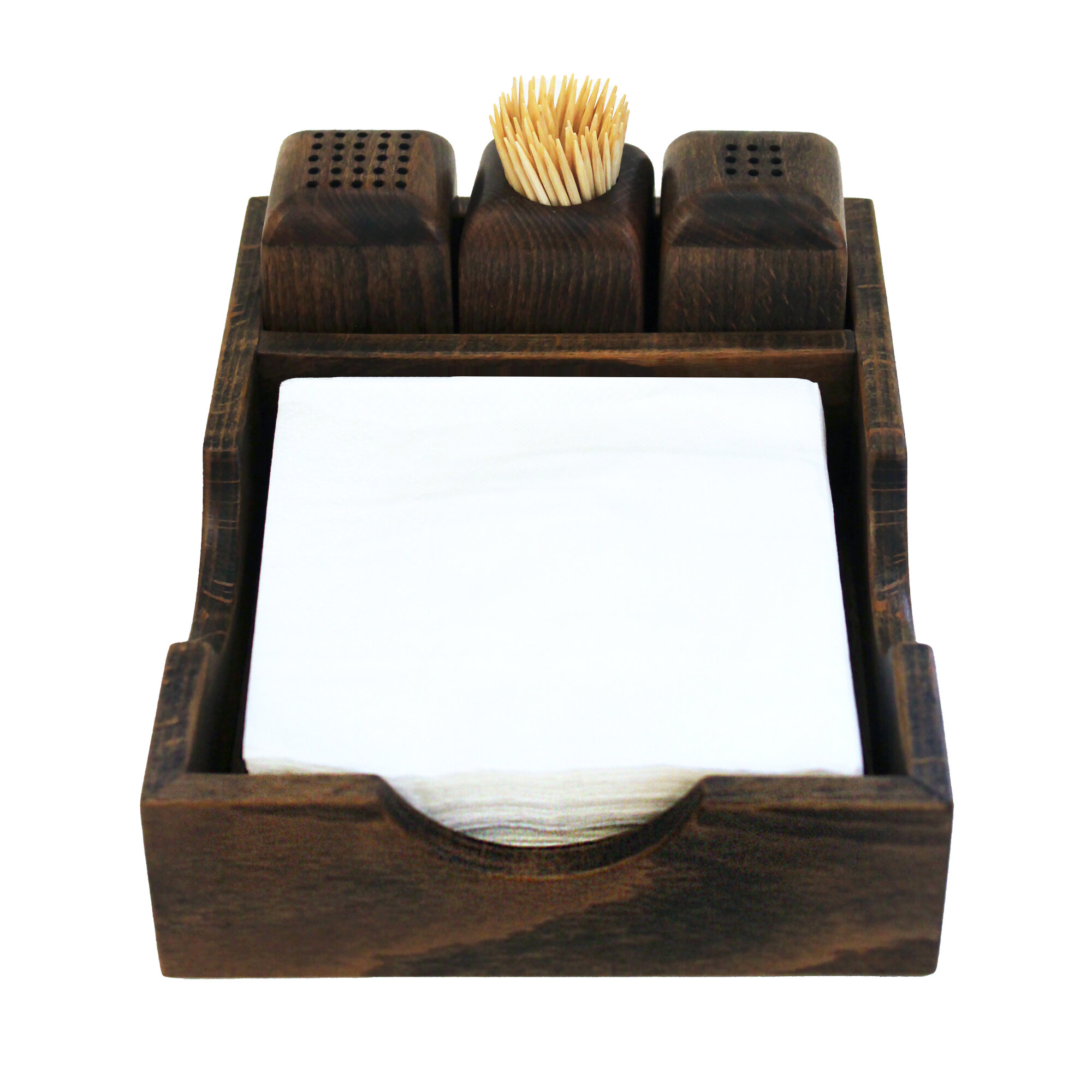 Салфетница + солонка и перечница + подставка под зубочистки (стилизованный набор)