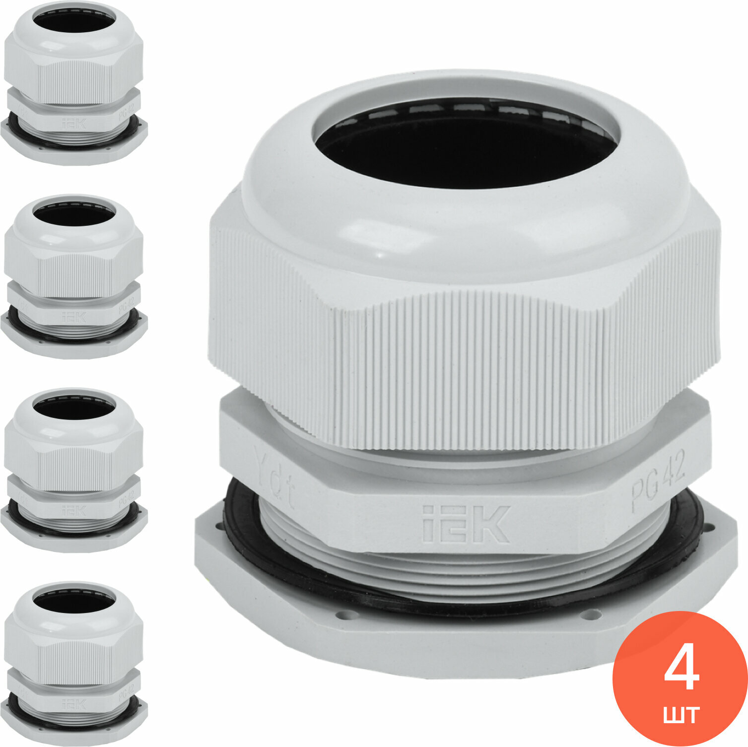Сальник IEK / ИЭК для ввода кабеля в щитовое оборудование, пластиковый серый, степень защиты IP54, резьба PG 42 с шагом 1.59мм, диаметр 30-40мм / электрика (комплект из 4 шт): сравнение цен, характеристики, фото, актуальное наличие и цены.