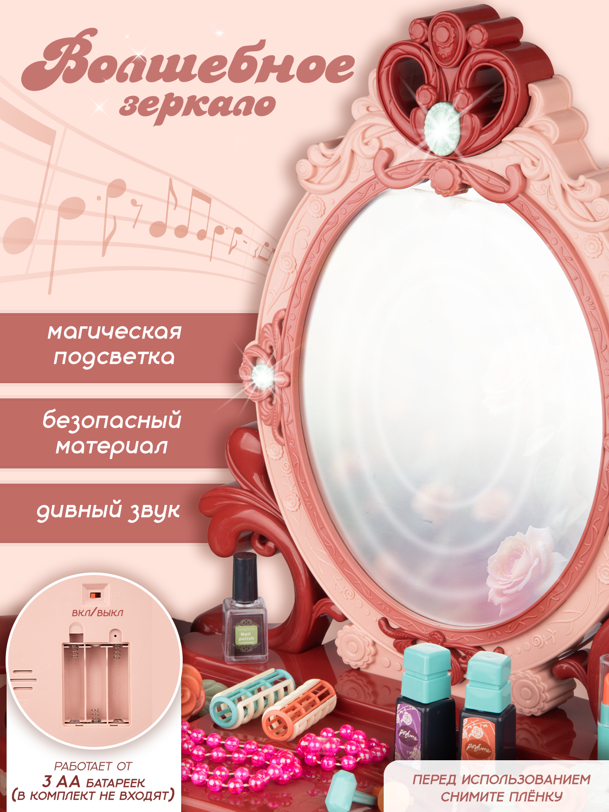 Косметический столик детский поставляется в разобранном виде. Батарейки (3×AA) не входят в комплект.