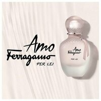 Пребывая в восторге от уникальной женской красоты, Сальватор Феррагамо всерьез задумался, как подарить им частичку волшебства, чтобы в любой момент, как по взмаху волшебной палочки, можно было перенестись в сказочную страну, где останавливается время и царствует гармония, счастье и любовь. Выход был найден, и в 2020 году появляется ангельский аромат Salvatore Ferragamo Amo Ferragamo Per Lei, как посвящение нежности и искренним, окрыляющим чувствам. Невероятно изящный, будто спустившийся с небес матовый молочный флакон пропитан пудровыми переливами, украшен романтичной розовой ленточкой и филигранной рельефной крышкой, словно перламутровой жемчужиной. Сочная пирамида рисует картинку райского сада, где фруктово-земельными нюансами исходит налитая розовобокая груша и цепляются за обнаженные ноги колкие кусты малины, приоткрывая налитые летним солнцем малиновые ягоды, покрытые толстым слоем густого весеннего меда. В центре треугольника разбросала сливочные лепестки восхитительная женственная магнолия и бархатные соцветия душистого османтуса, с тонким травянисто-чайным обертоном. Последний вдох удовольствия приносит воздушный шлейф Salvatore Ferragamo Amo Ferragamo Per Lei из шелковистого мускуса, молочного сандала и теплого кедра.