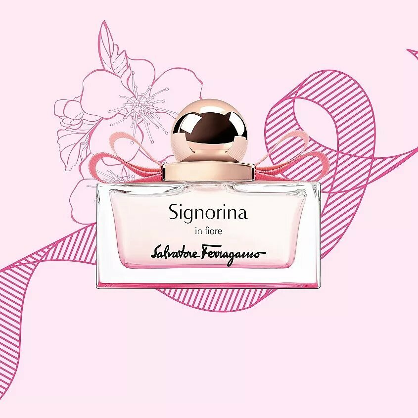 Известная линейка ароматов Signorina итальянского бренда Salvatore Ferragamo создала еще одну не менее оригинальную композицию Signorina In Fiore. Данный парфюм предназначен для юной аудитории, для которой характерны наивность, легкость, непредсказуемость и беззаботность. Он предлагает почувствовать свежие цветочные ансамбли, которые подарят ощущение весны, романтики и жизнерадостности. Signorina In Fiore – это женский аромат, который относится к группе цветочные фруктовые. Его выпуск планируется в 2017 году. Над композицией аромата работала парфюмер Emilie (Bevierre) Coppermann, которая решила посвятить созданный парфюм молодым девушкам. Юность, дарующая романтические чувства и влюбленность, схожа с приходом весной, которая пробуждает лучами солнца первые цветы. Ансамбль из цветов и фруктов начинает открываться звучанием грушевого сорбета, который переплетается с сочными нотами спелого граната. Постепенно первичная композиция аромата меняется на сердечные оттенки доминирующего вишневого цвета и сладких лепестков жасмина. Воздушный, нежный и легкий парфюм завершается шлейфом, сотканным из белого мускуса и сандалового дерева.