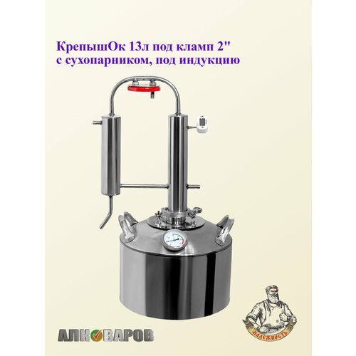 Самогонный аппарат Алковар Крепышок идеальная практичность с максимальной выгодой современный и надежный. Отвечает всем поставленным целям самогонщика. Этот самогонный аппарат с сухопарником, подходит под все стандартные вытяжки. Высота в сборе 64см/79см. Увеличен диаметр трубки самогонного аппарата, змеевика до 10мм. Змеевик вертикальный. Ровное дно, удобные боковые ручки, приятный и презентабельный внешний вид.