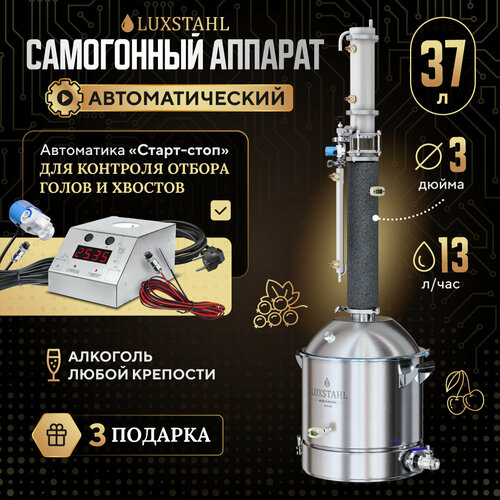 Автоматический самогонный аппарат Luxstahl 8М, 37 л – дистиллятор колонного типа для дома и дачи. Он уже имеет все, что нужно для начала работы. Устройство с автоматикой и переходником для ее подключения сэкономит ваше время при самогоноварении. Готовьте разнообразные напитки высочайшего качества себестоимостью меньше 100 рублей за бутылку! Гарантия 10 лет!