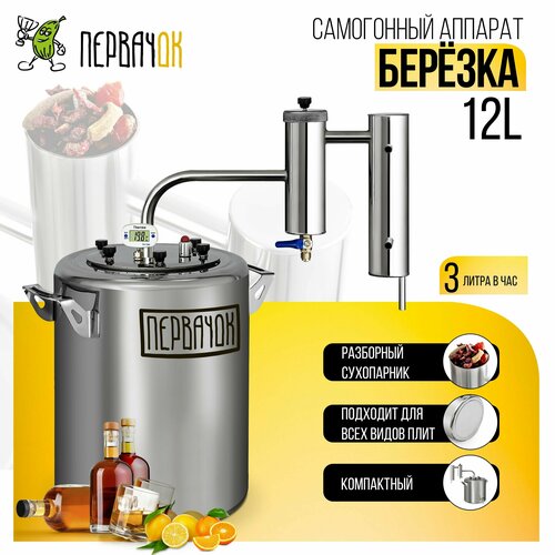 Самогонный аппарат «ПервачОк» Берёзка, 12 литров, бытовой дистиллятор с сухопарником: сравнение цен, характеристики, фото, актуальное наличие и цены.