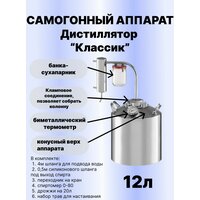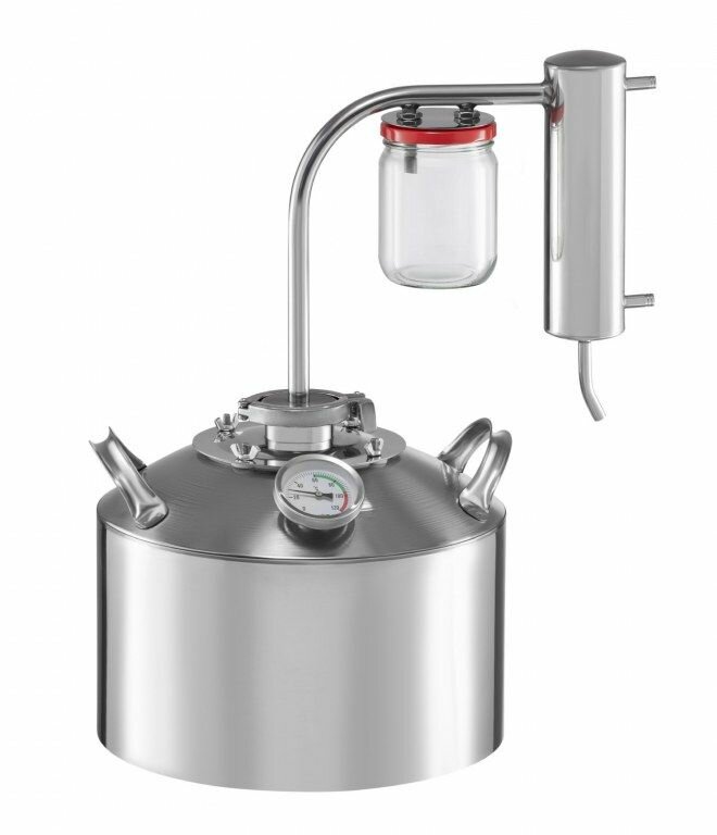 | Подробная комплектация | Комплектация: - перегонная емкость (кастрюля для браги), с широкой заливной горловиной; - проточный змеевик, для охлаждения спиртосодержащего пара; - сухопарник под стеклянную банку; - биметаллический термометр; - прокладка, для герметизации аппарата в соединении: крышка - куб; - Инструкция с гарантийным талоном. - 4м шланга для подвода воды - 0,5м силиконового шланга под выход спирта - спиртомер 0-80 - дрожжи на 20л - переходник на кран - набор трав для настаивания |