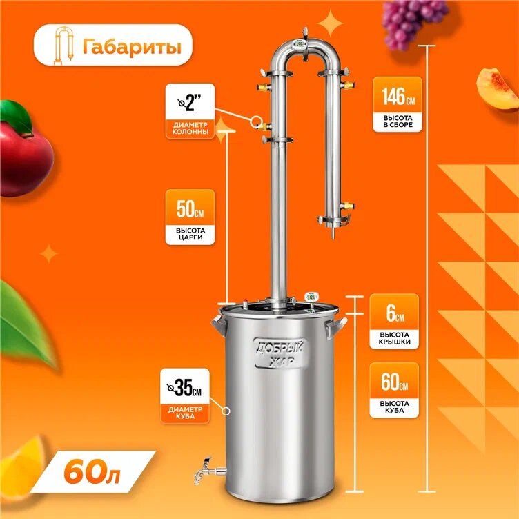| Подробная комплектация | Прижимной хомут - 1 шт. Гермоввод - 2 шт. Клапан сброса давления - 1 шт. Перегонный куб - 1 шт. Сливной кран - 1 шт. Крышка - 1 шт. Прокладка под крышку - 1 шт. Электронный термометр - 2 шт. Царга 50 см 2 дюйма - 1 шт. РПН 50 см - 3 шт. Отвод 2 дюйма - 2 шт. Съемный носик с ТСА 2 дюйма - 1 шт. Прокладка под кламп 2 дюйма - 6 шт. Хомут на кламп 2 дюйма - 6 шт. Дефлегматор 7 трубок 2 дюйма - 1 шт. Холодильник 7 трубок 2 дюйма - 1 шт. Быстросъем - 4 шт. |