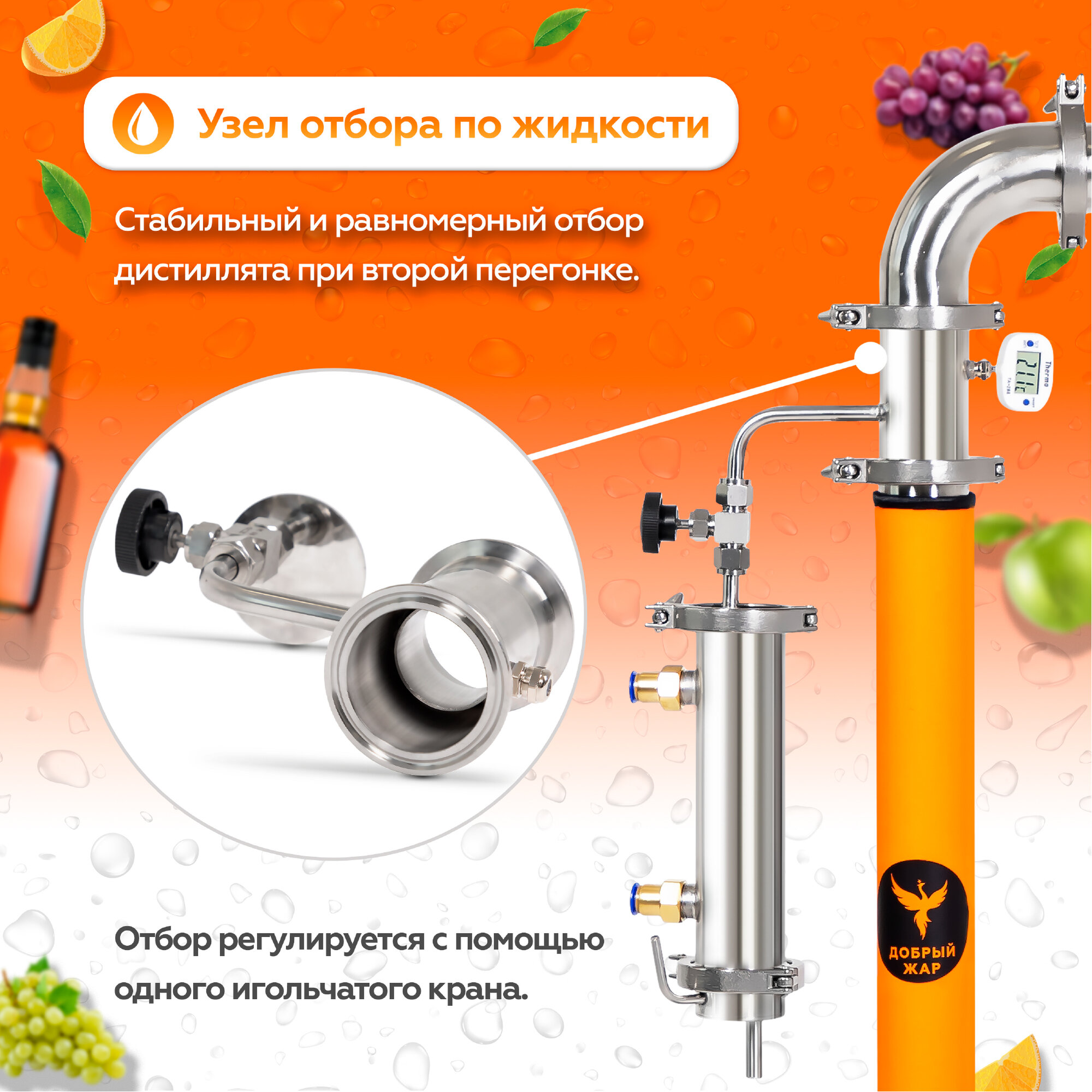 Самогонный аппарат Добрый Жар «Титан», 37 литров с ТЭН, тарельчатая колонна 2 дюйма с узлом отбора и доохладителем: сравнение цен, характеристики, фото, актуальное наличие и цены.