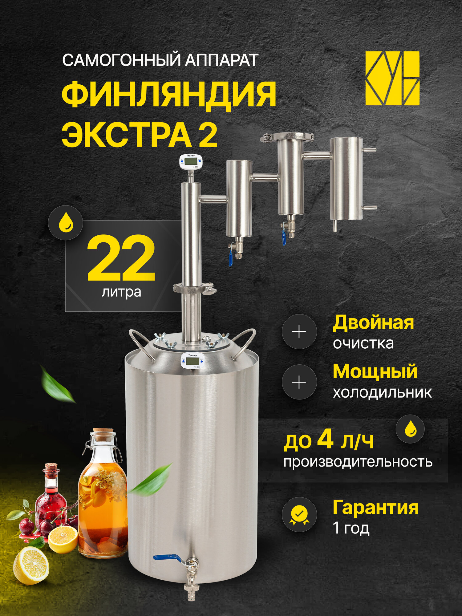 Самогонный аппарат Финляндия Экстра 2, 22л/ Дистиллятор/ Самогонный аппарат с двумя сухопарниками: сравнение цен, характеристики, фото, актуальное наличие и цены.