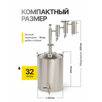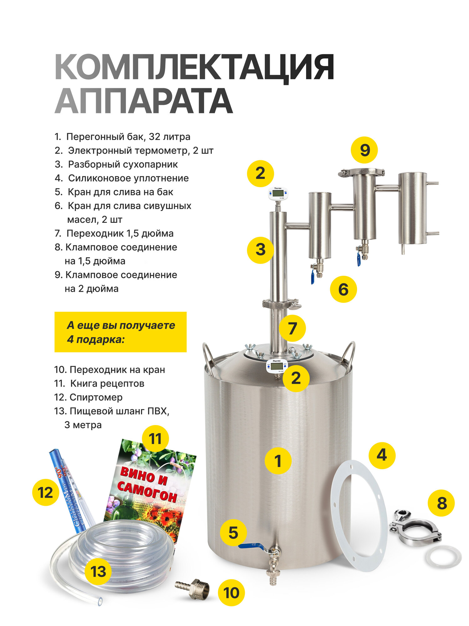 Купить Самогонный аппарат Финляндия Экстра 2, 32л/ Дистиллятор/ Самогонный аппарат с двумя сухопарниками с доставкой по всей России.