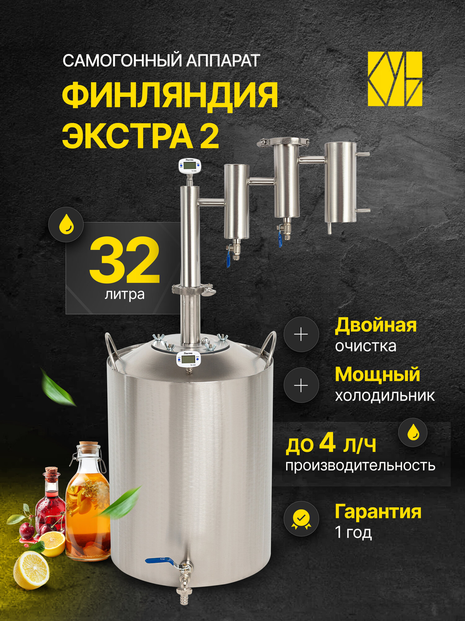Самогонный аппарат Финляндия Экстра 2, 32л/ Дистиллятор/ Самогонный аппарат с двумя сухопарниками: сравнение цен, характеристики, фото, актуальное наличие и цены.