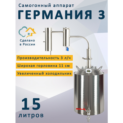 Германия 3 — доработанная и усовершенствованная версия полюбившейся людьми линейки самогонных аппаратов. Мы учли недоработки предыдущей версии аппарата и, основываясь на рекомендациях были внесены важные изменения в конструкцию нового аппарата.