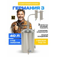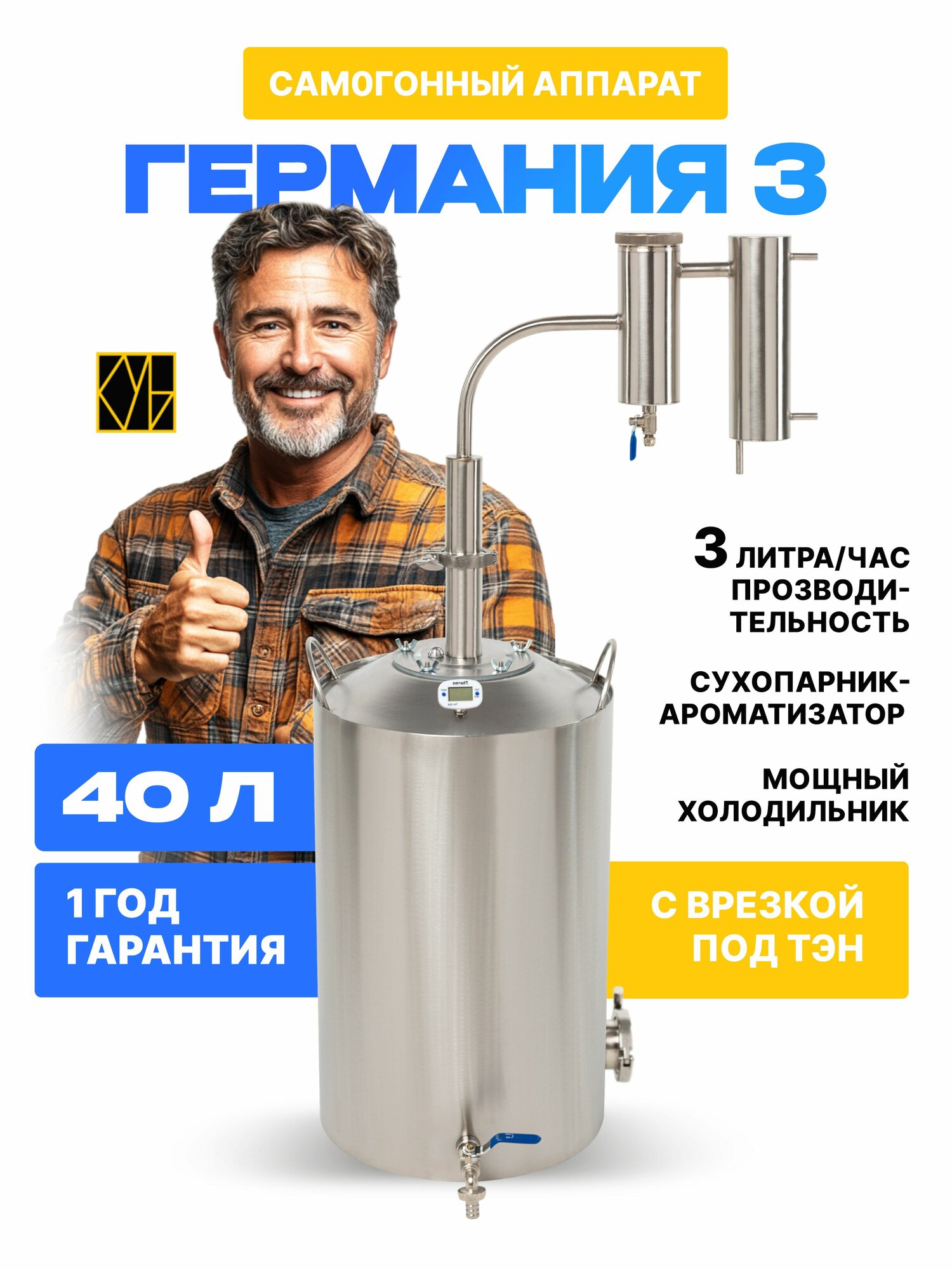 Самогонный аппарат Германия 3 40 литров / дистиллятор с врезкой под ТЭН от компании ТПК КУБ / для всех типов плит.: сравнение цен, характеристики, фото, актуальное наличие и цены.