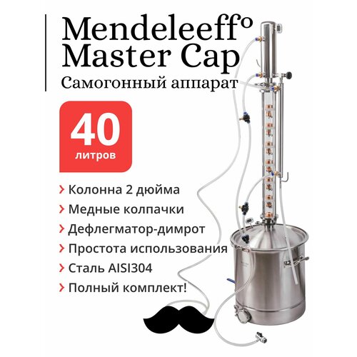 Купить Самогонный аппарат Master Cap 2 дюйма с колпачковой тарельчатой колонной 7 уровней (медные колпачки), куб 40 литров, 304-я сталь, с клампом под ТЭН с доставкой по всей России.