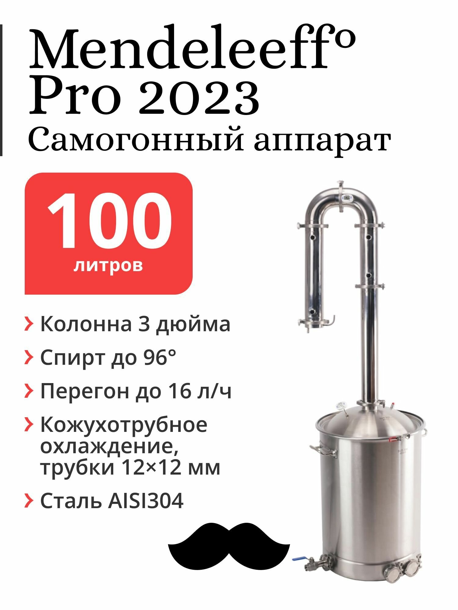 Самогонный аппарат Mendeleeff° Pro — решение для плит с мощностью до 9 кВт. Всё необходимое — в комплекте.