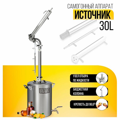 | Подробная комплектация | перегонный куб с силиконовй прокладкой и краном для слива барды; барашки из нержавеющей стали - 6 шт. и фланец под кламп 1.5 дюйма; гермоввод-2 шт. и цифровые термометры - 2 шт.; хомут 1.5 дюйма с прокладкой под кламп - 6 шт.; царга 50 см под кламп 1.5 дюйма; дефлегматор с 5 трубками; отвод 90 гр. под кламп 1.5 дюйма- 2 шт.; холодильник-5трубок - под кламп 1.5 дюйма; съемный носик с атмосферным выходом под кламп 1.5 дюйма; быстросъемные соединения 10 мм - 4 шт. |