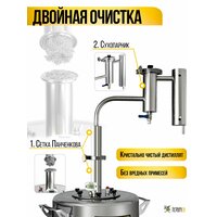 | Подробная комплектация | клапан сброса давления; Перегонный куб с силиконовой прокладкой и барашками из нерж. стали; герметический ввод - 1шт и цифровой термометр - 1шт; фланец-стойка и джин корзина; В ПОДАРОК - Шланг ПВХ Насадка Панченкова - 2шт |