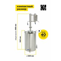 Купить Самогонный аппарат с сухопарником Cube Гранд с врезкой под тэн 40 литров / дистиллятор бытовой / ТПК КУБ. с доставкой по всей России.