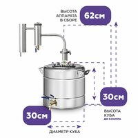 | Подробная комплектация | перегонный куб, силиконовая прокладка, барашки из нержавеющей стали - 6 шт, фланец под кламп, кламп с прокладкой 1,5 дюйма, гермоввод, цифровой термометр, клапан сброса давления, голова с разборным сухопарником и холодильником, шланг ПВХ-4м, спиртомер, книга с рецептами (бумажная или электронная). |
