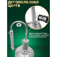 Контроль состояния системы и безопасность обеспечивают 2 электронных термометра (на крышке куба и соединительной трубке), силиконовый клапан сброса давления.