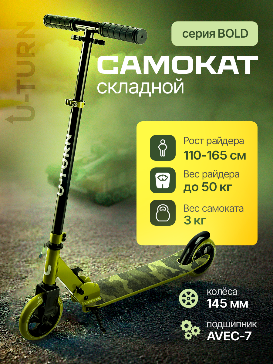 Самокат 2-х колесный серия «BOLD» колеса PU 145 мм, нагрузка до 50 кг, регулируемая высота руля от 70-91 см, хаки: сравнение цен, характеристики, фото, актуальное наличие и цены.