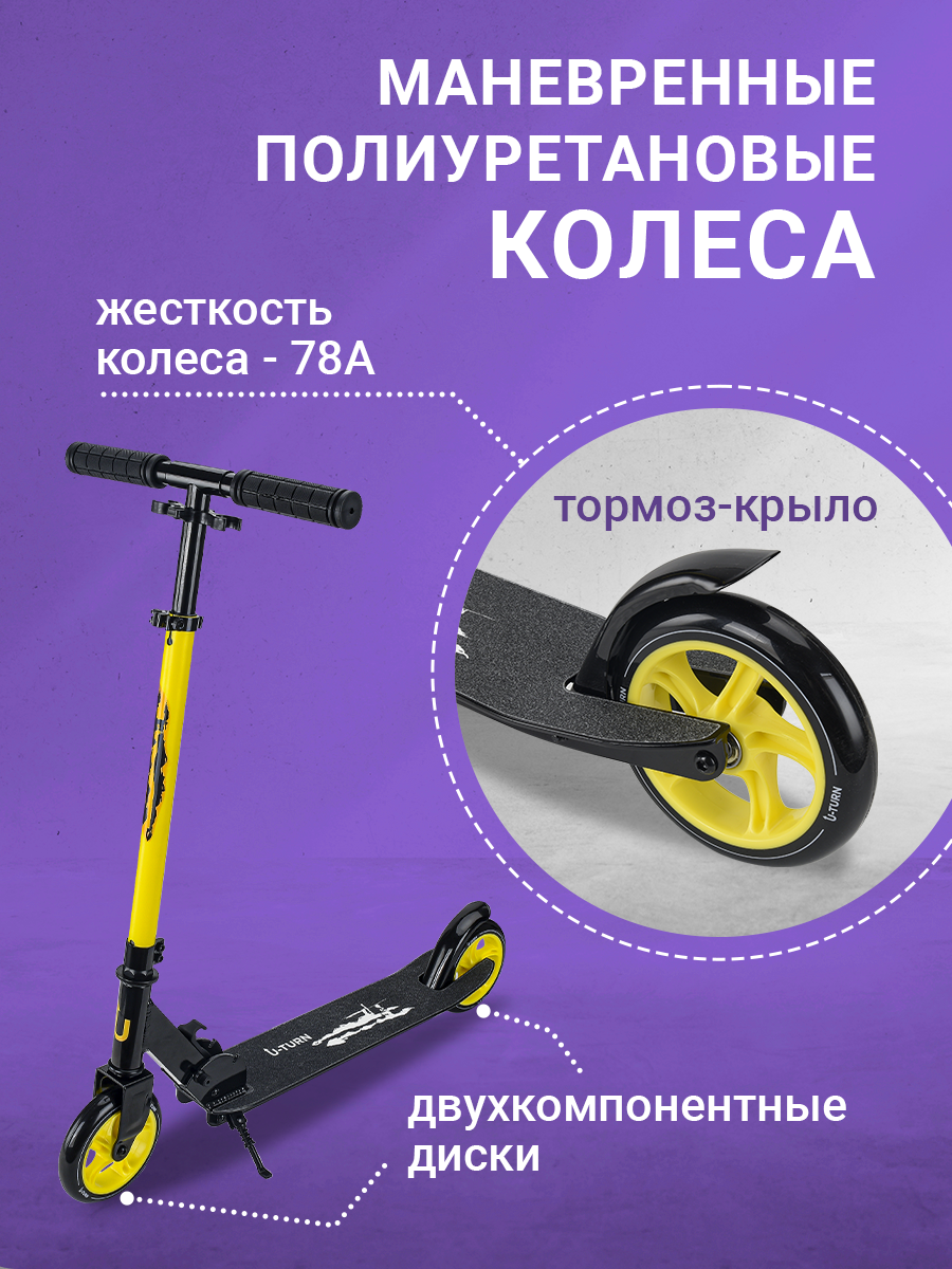 Самокат 2-х колесный серия «BOLD» колеса PU 145 мм, нагрузка до 50 кг, регулируемая высота руля от 70-91 см, желтый/черный: сравнение цен, характеристики, фото, актуальное наличие и цены.