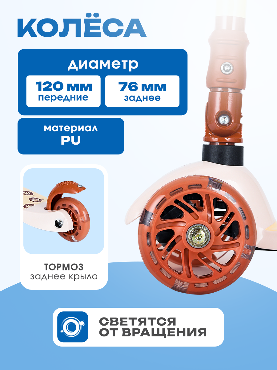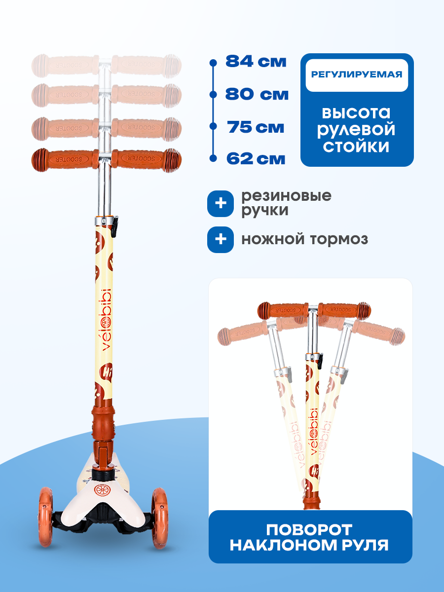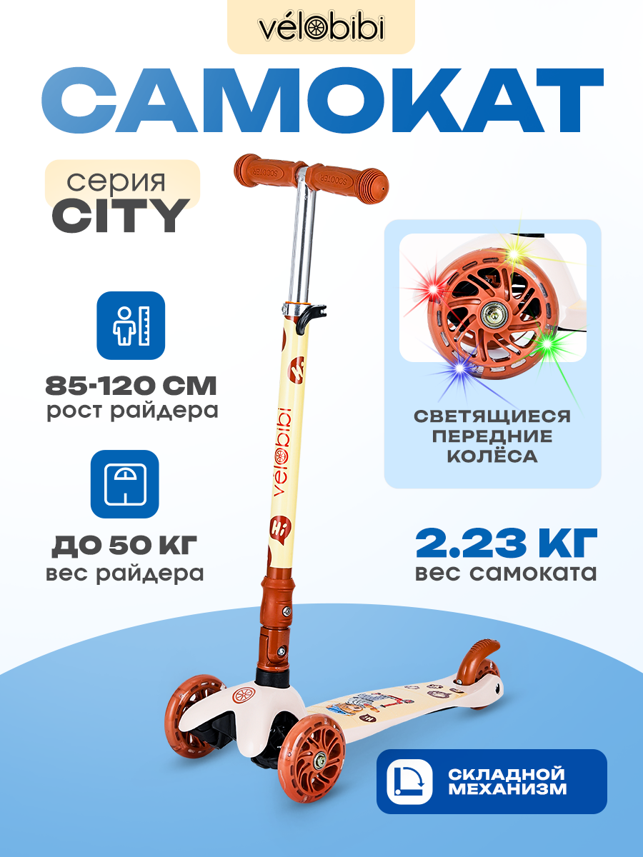 Самокат 3-х колесный City, нагрузка до 50 кг, складной, светящиеся передние колеса, цвет бежевый: сравнение цен, характеристики, фото, актуальное наличие и цены.