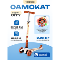 Купить Самокат 3-х колесный City, нагрузка до 50 кг, складной, светящиеся передние колеса, цвет бежевый с доставкой по всей России.