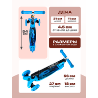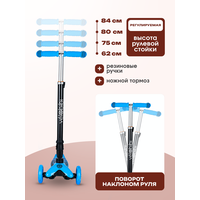 Купить Самокат 3-х колесный City, нагрузка до 50 кг, складной, светящиеся передние колеса, цвет синий с доставкой по всей России.