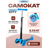 Самокат 3-х колесный City, нагрузка до 50 кг, складной, светящиеся передние колеса, цвет синий: сравнение цен, характеристики, фото, актуальное наличие и цены.