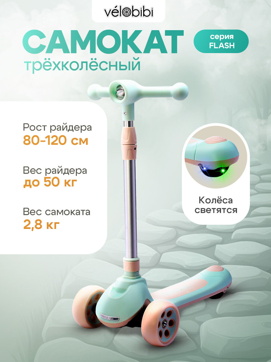 Выбирая самокат 3-х колесный FLASH, вы получаете надежный, безопасный и стильный городской самокат для вашего ребенка.