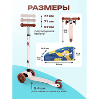 Рулевая стойка самоката регулируется по высоте от 67 до 77 см, что позволяет настроить самокат под рост ребенка и обеспечивает легкое управление. Максимальная нагрузка на самокат составляет до 50 кг, что делает его подходящим для детей разного возраста.