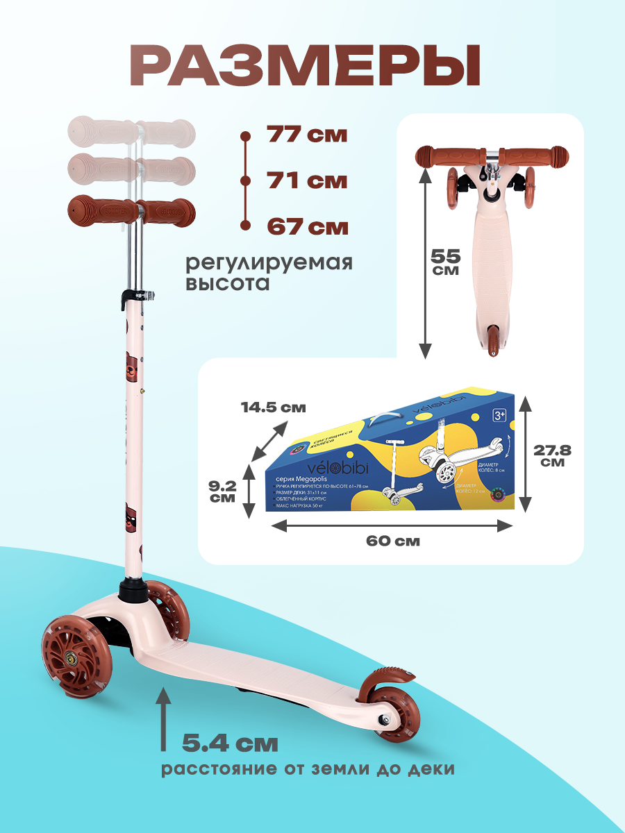 Купить Самокат трехколесный Velobibi серия «MEGAPOLIS» светящиеся колеса, регулируемая высота руля, нагрузка до 50 кг, бежевый с доставкой по всей России. Самокат трехколесный Velobibi серия «MEGAPOLIS» светящиеся колеса, регулируемая высота руля, нагрузка до 50 кг, бежевый: сравнение цен, характеристики, фото, актуальное наличие и цены.