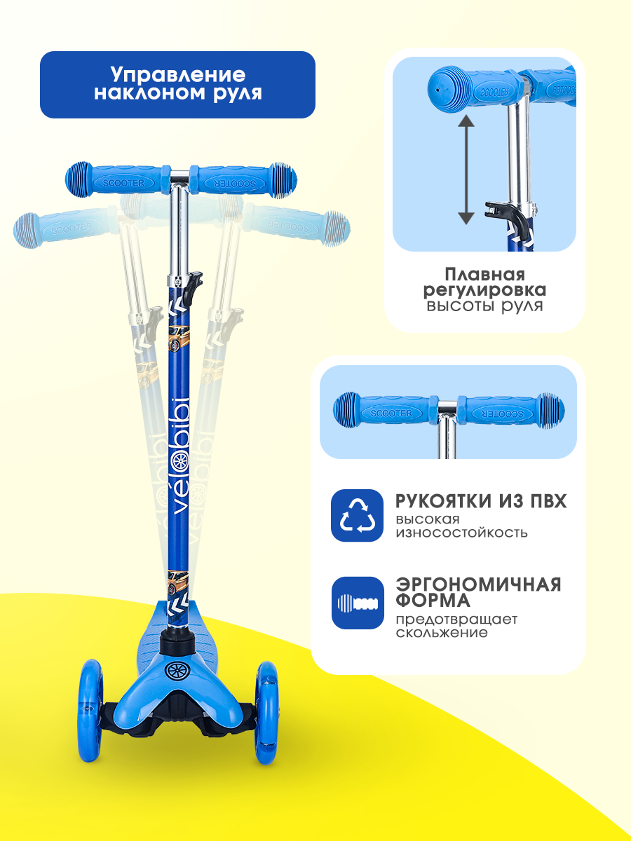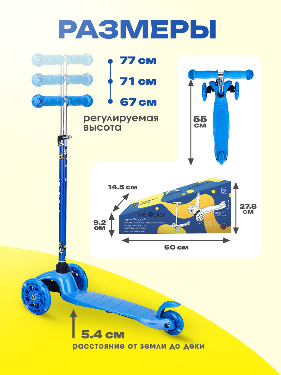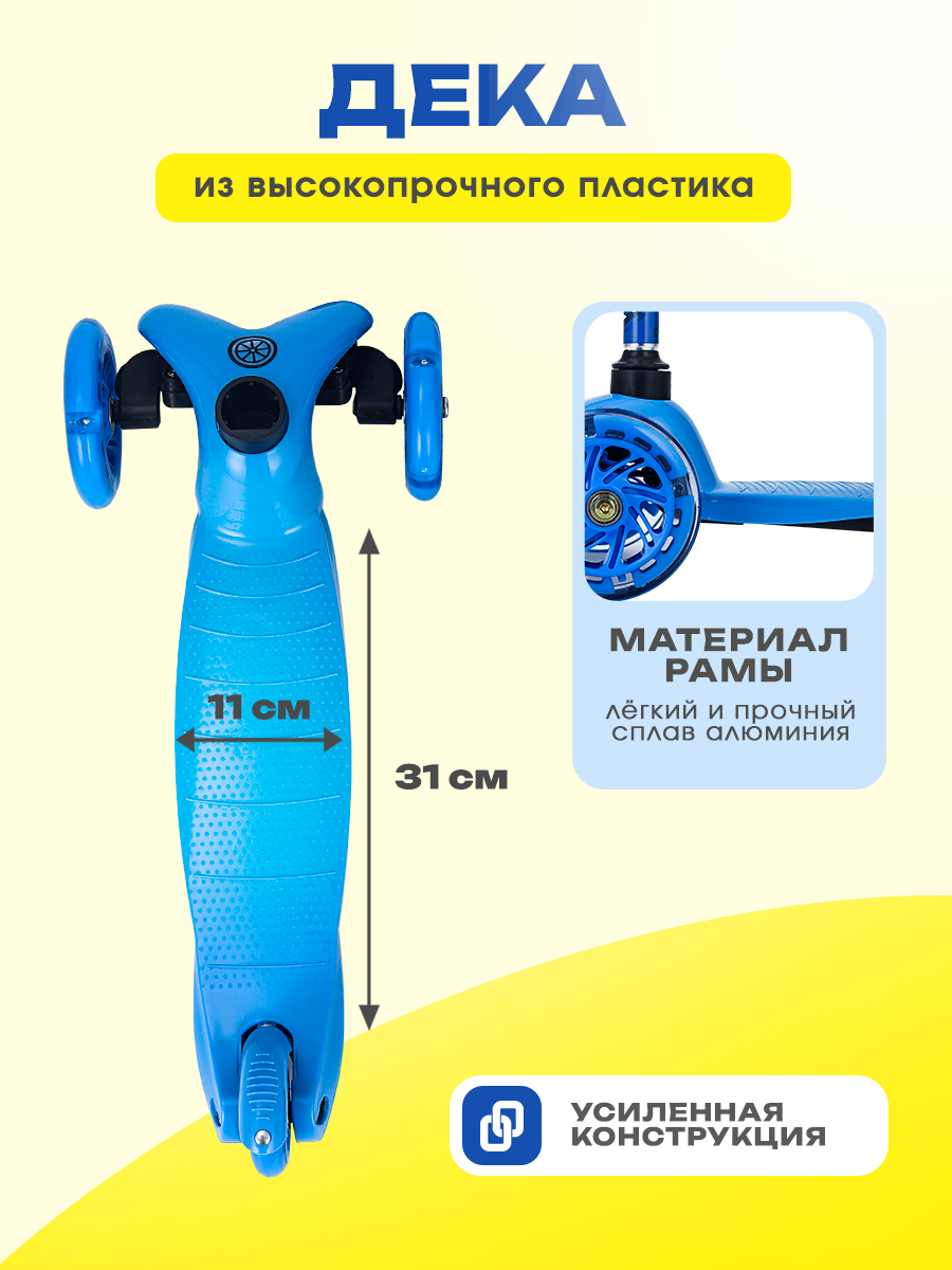 Самокат 3-колесный «Megapolis» со светящимися колесами, нагрузка до 50 кг. Цвет синий. Артикул СМК-2109: сравнение цен, характеристики, фото, актуальное наличие и цены.