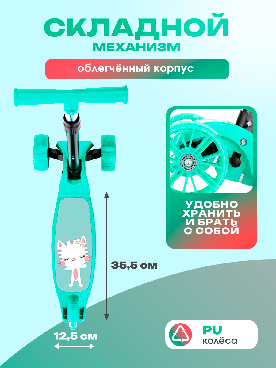 Самокат 3х-колесный серия «Sweety» со складной ручкой, колеса PU, световые эффекты, нагрузка до 30 кг, бирюзовый: сравнение цен, характеристики, фото, актуальное наличие и цены.