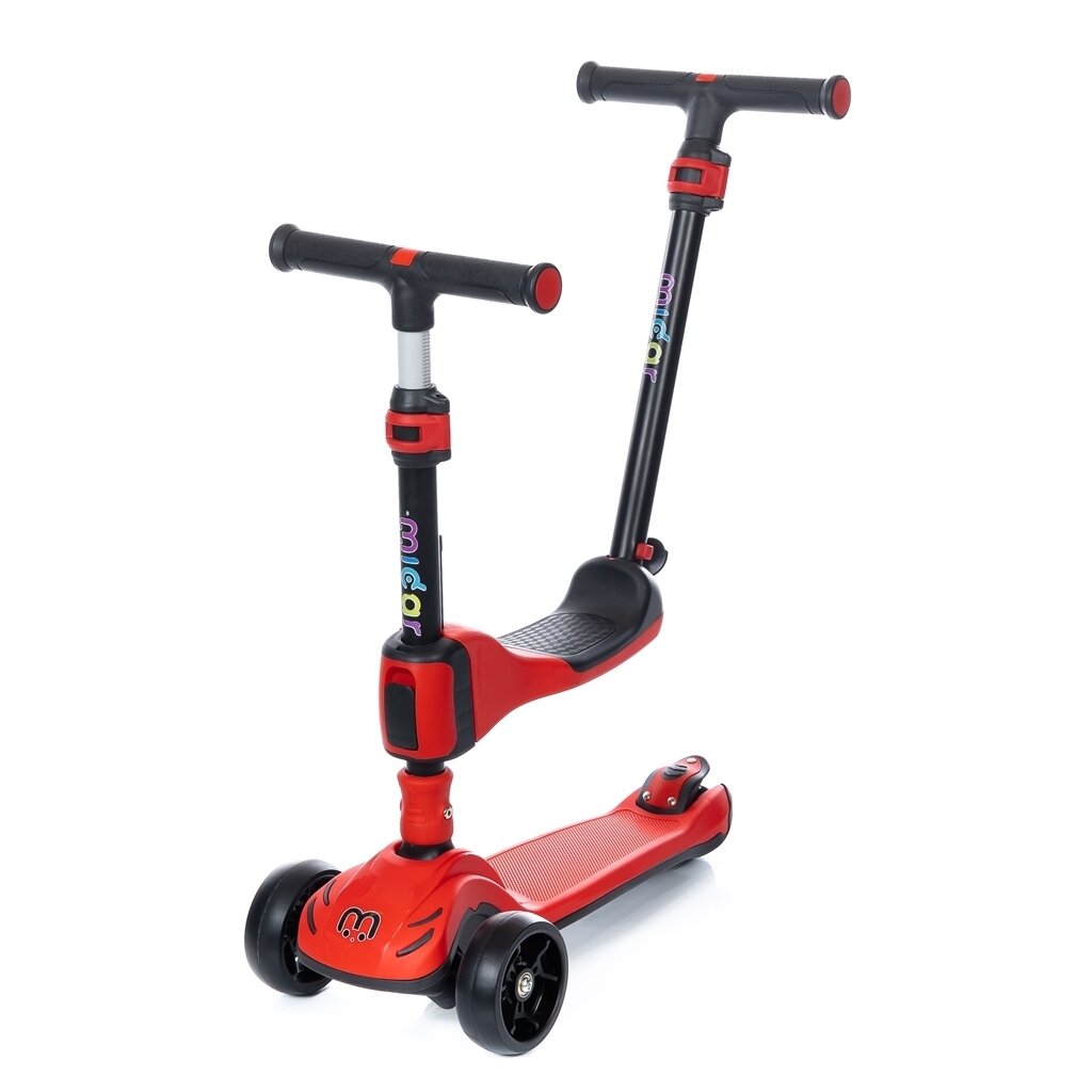 Купить Самокат-беговел 3 в 1 Scooter Micar Transformer складной со светящимися колесами, сиденьем и родительской ручкой Красный (Арт. Ro 208) с доставкой по всей России.