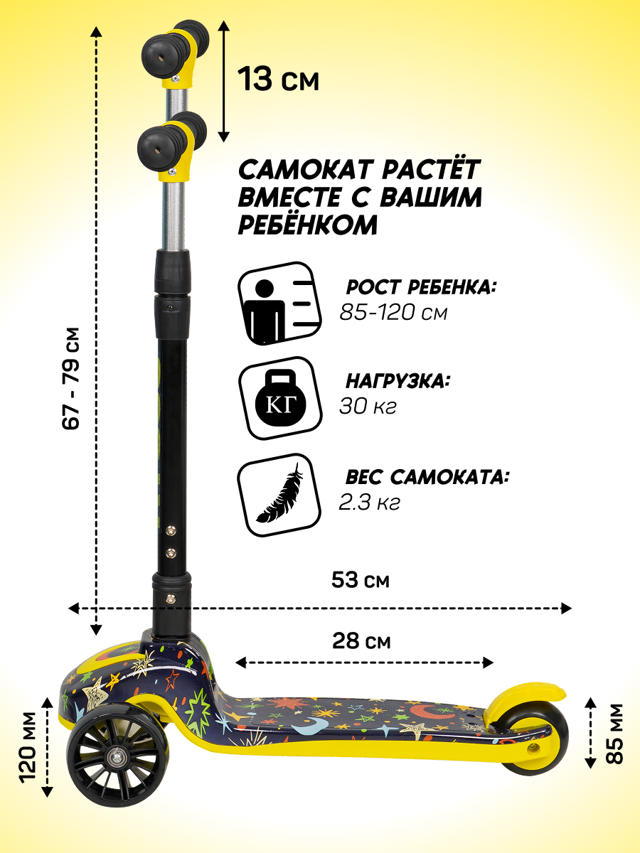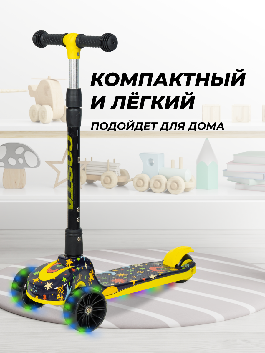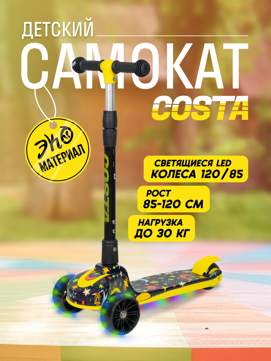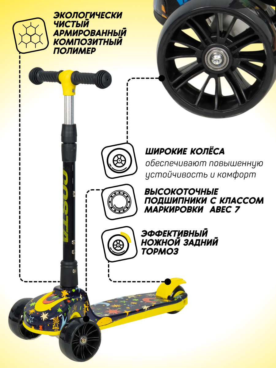 Самокат Costa AB-13, детский, трехколесный, со световыми эффектами, складная конструкция, желтый: сравнение цен, характеристики, фото, актуальное наличие и цены.