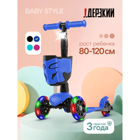 Самокат ! Дерзкий BABY Стайл с корзинкой светящиеся колеса трехколесный синий: сравнение цен, характеристики, фото, актуальное наличие и цены.