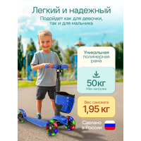 Купить Самокат ! Дерзкий BABY Стайл с корзинкой светящиеся колеса трехколесный синий с доставкой по всей России.