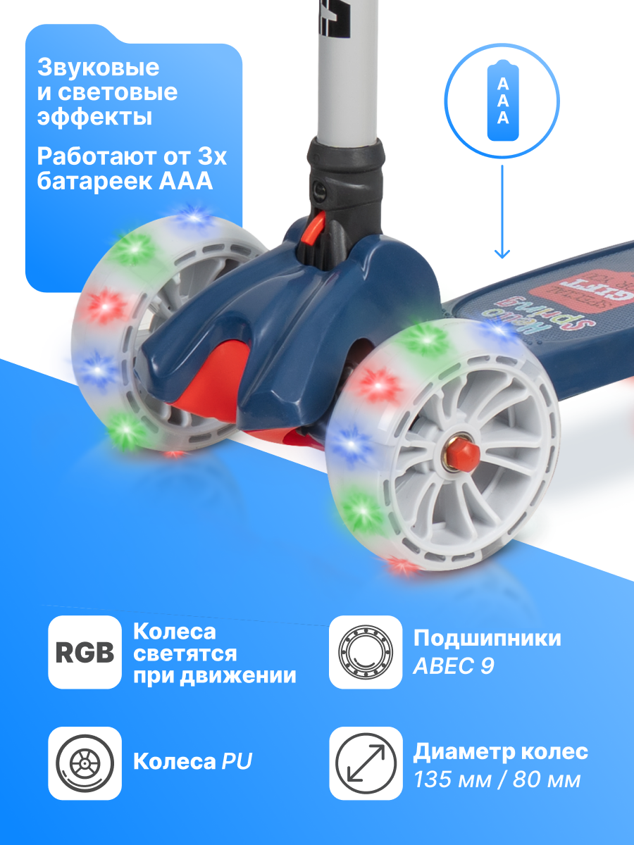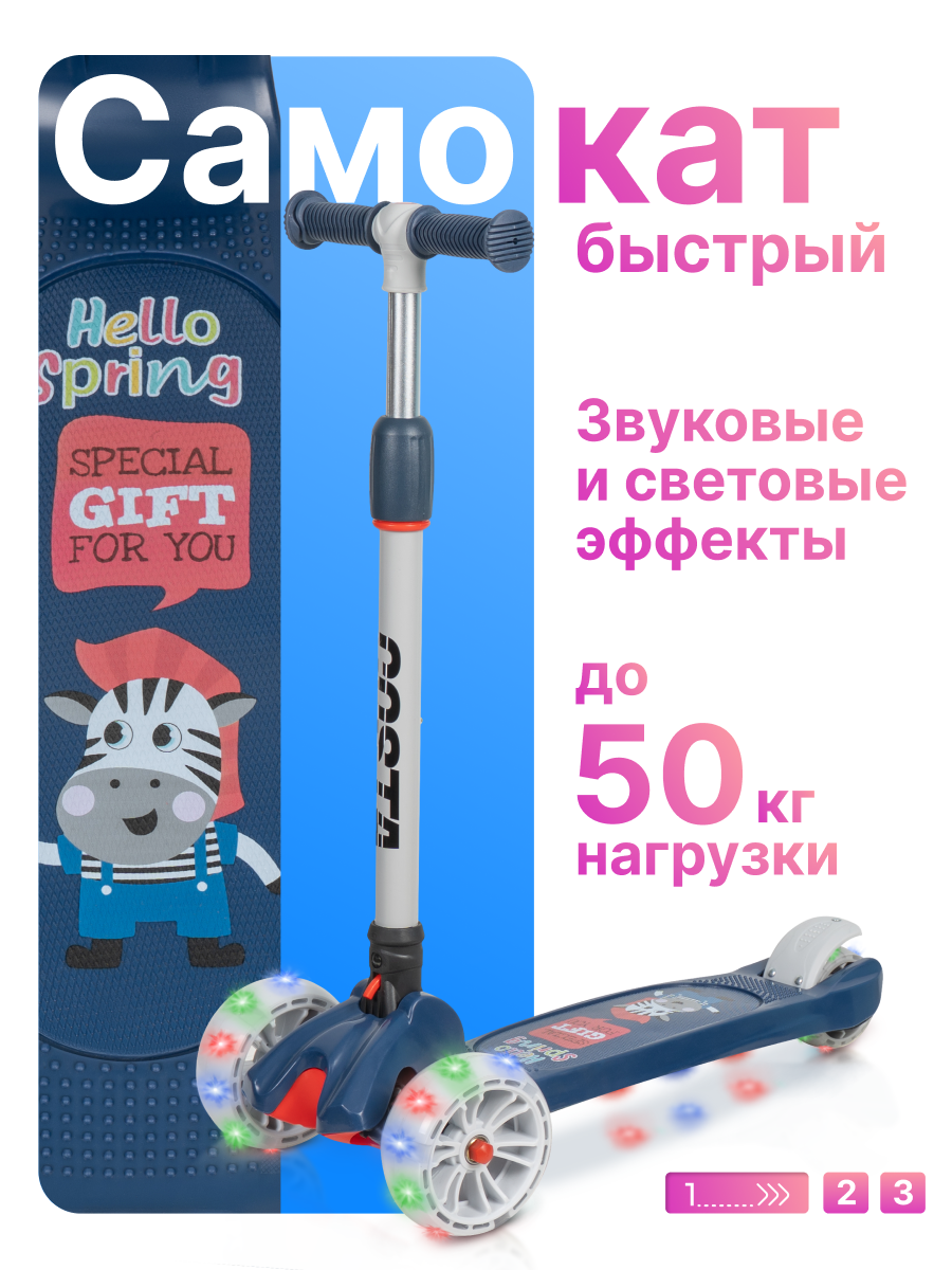 Самокат детский Costa FF252, трехколесный, складной, с регулировкой руля, с подсветкой, синий: сравнение цен, характеристики, фото, актуальное наличие и цены.