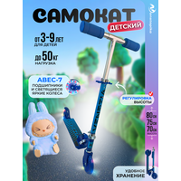 Купить Самокат детский Nonstopika, складной со светящимися колесами и складным рулем, Venezia, синий с доставкой по всей России.