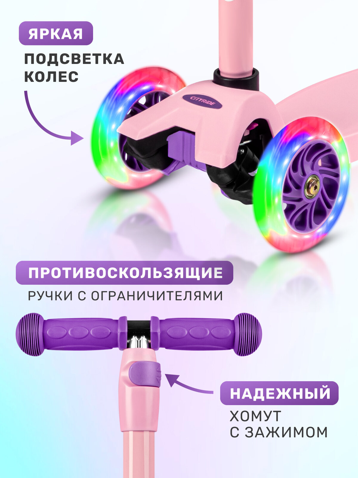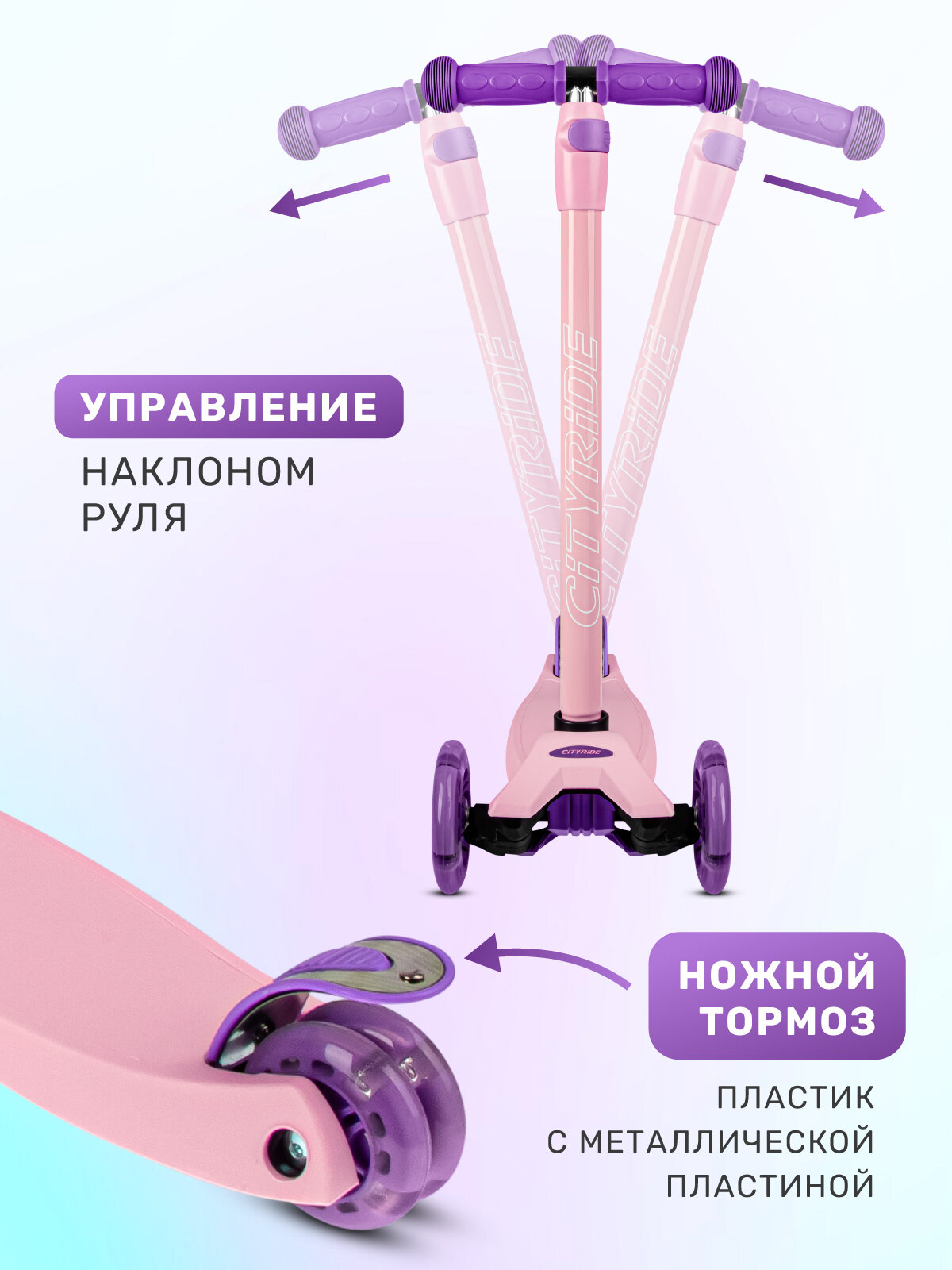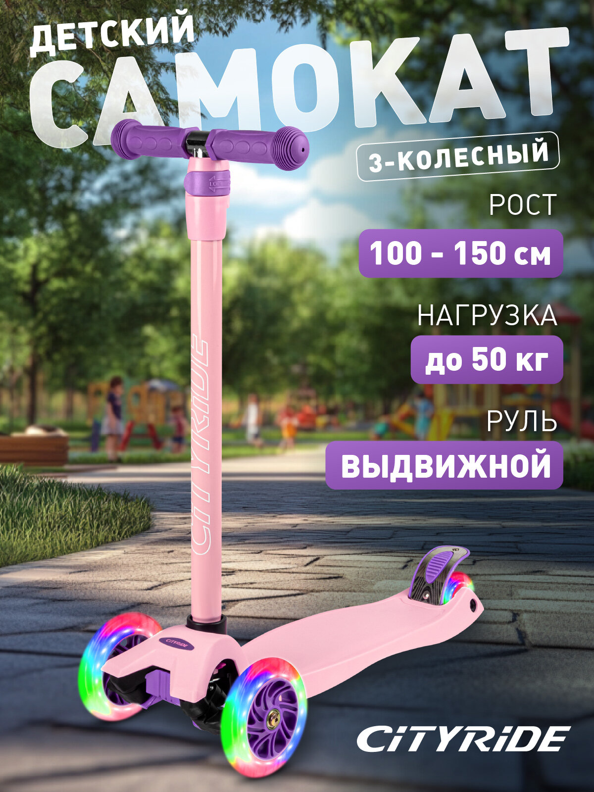 Самокат детский трехколесный CITYRIDE, дека 33*14, колеса PU 120/76 с подсветкой, Abec 7, выдвижной руль, CR-S5-01PV: сравнение цен, характеристики, фото, актуальное наличие и цены.