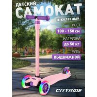 Купить Самокат детский трехколесный CITYRIDE, дека 33*14, колеса PU 120/76 с подсветкой, Abec 7, выдвижной руль, CR-S5-01PV с доставкой по всей России.