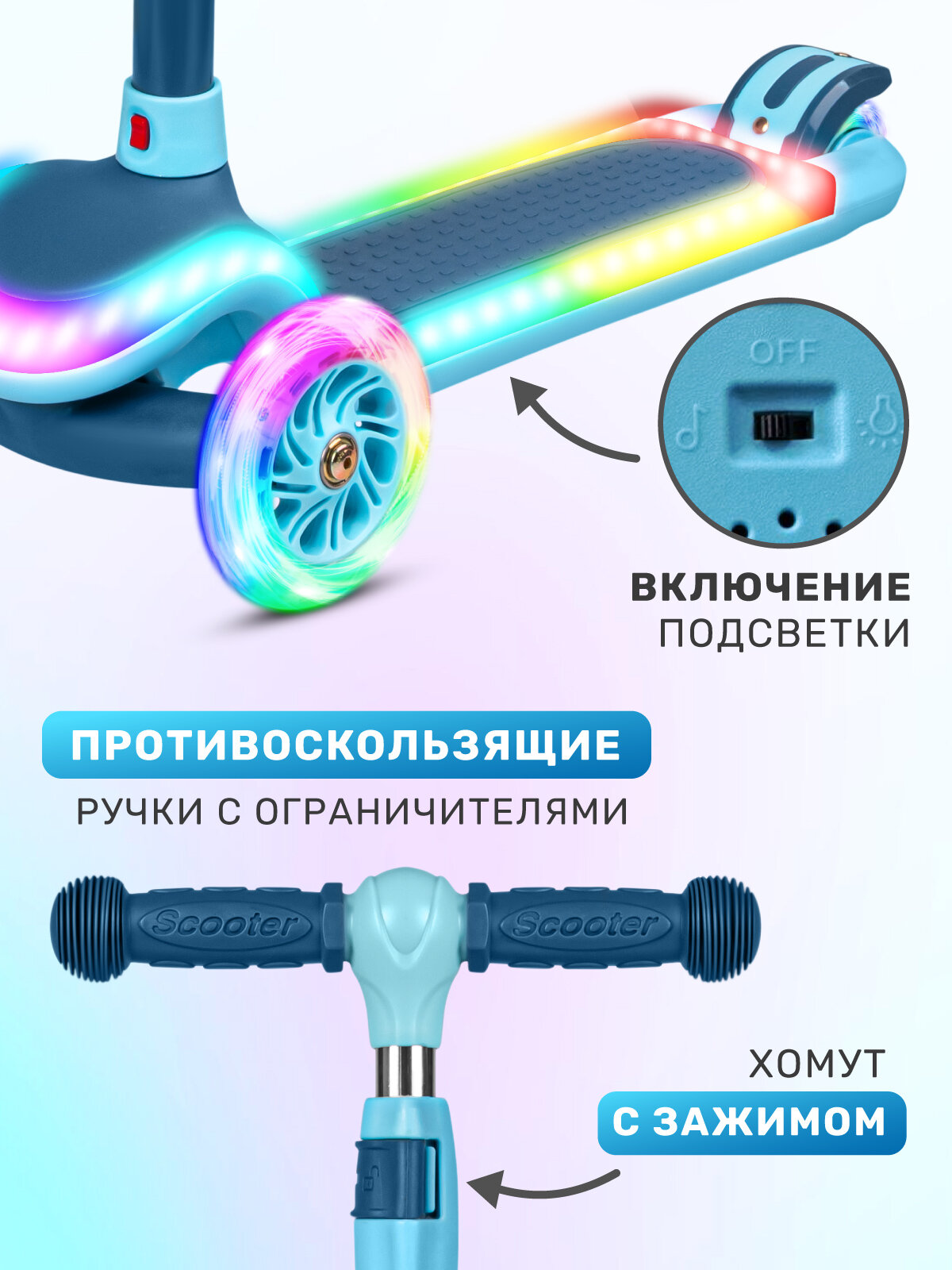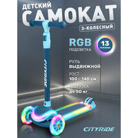 Самокат детский трехколесный CITYRIDE, дека с RGB подсветкой 32*13, колеса PU 120/76, руль выдвижной, CR-S4-09BL: сравнение цен, характеристики, фото, актуальное наличие и цены.